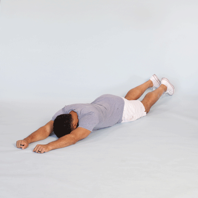 - Tighten your stomach muscles while flattening your back onto the floor.