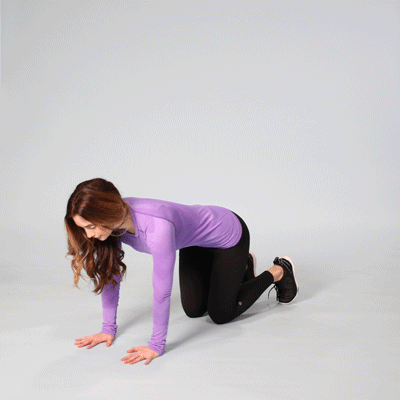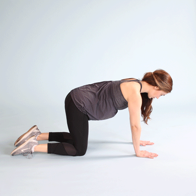- Begin on your hands and knees. Ensure your hands are directly under your shoulders and your knees are directly under your hips. Keep your back parallel with ground.